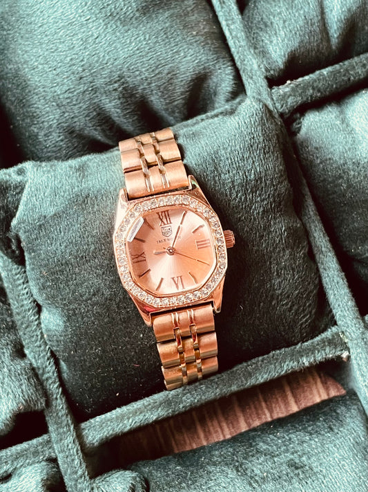 ✨Exquisite Rose Gold Crystal Studded True Worth Rose Dial Watch ✨