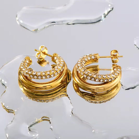 ✨Premium Gold Zircon studded Tri Hoop earrings ✨
