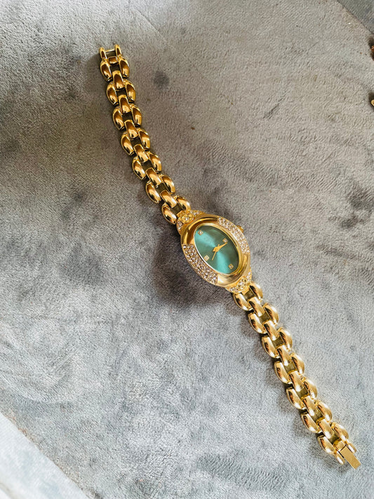 ✨Stainless Steel Gold True Worth Gold Crystal Studded Emerald Dial Watch ✨