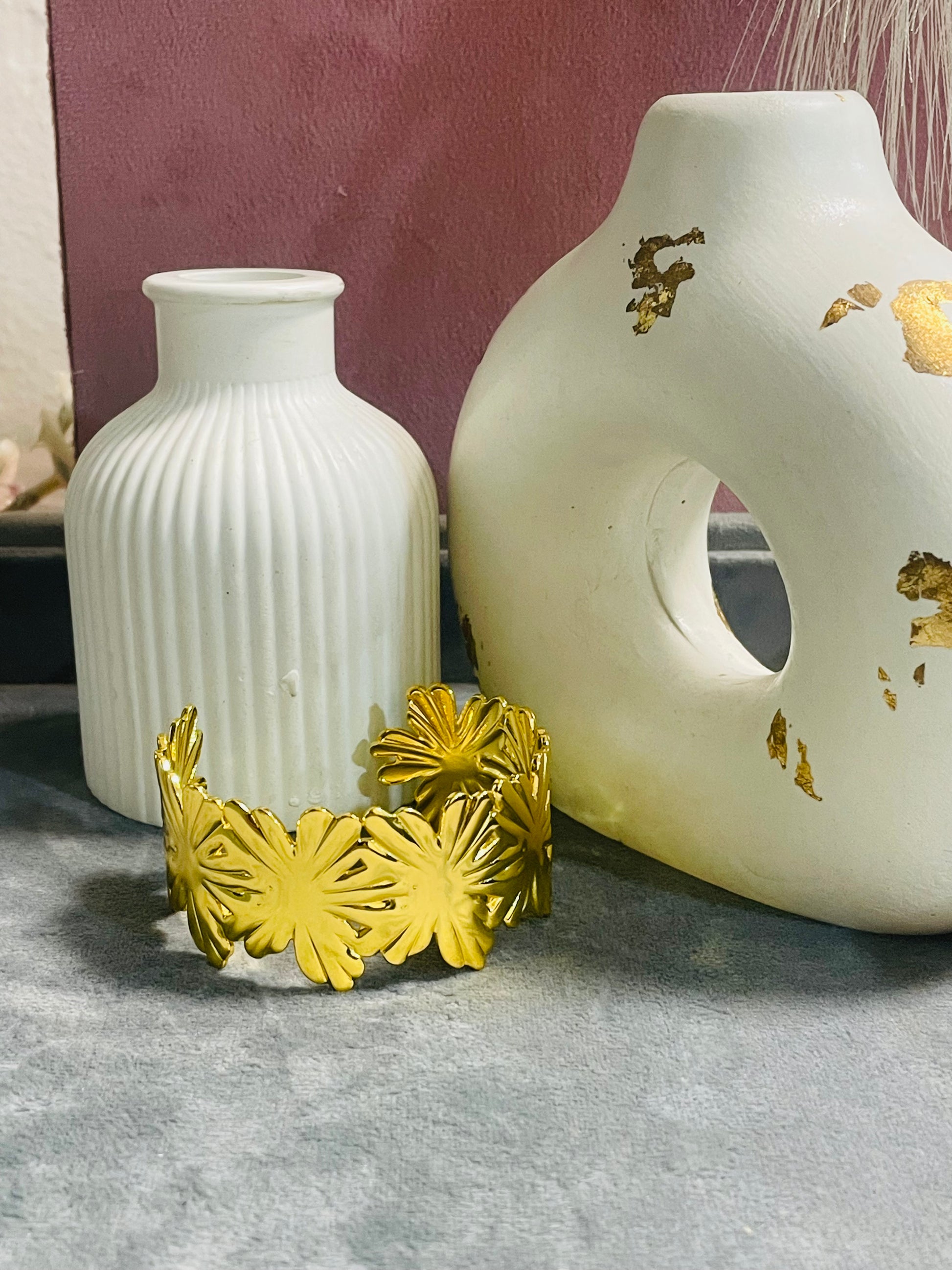 ✨ Exclusive Stainless steel Gold Chunky Adjustable Floral Cuff ✨