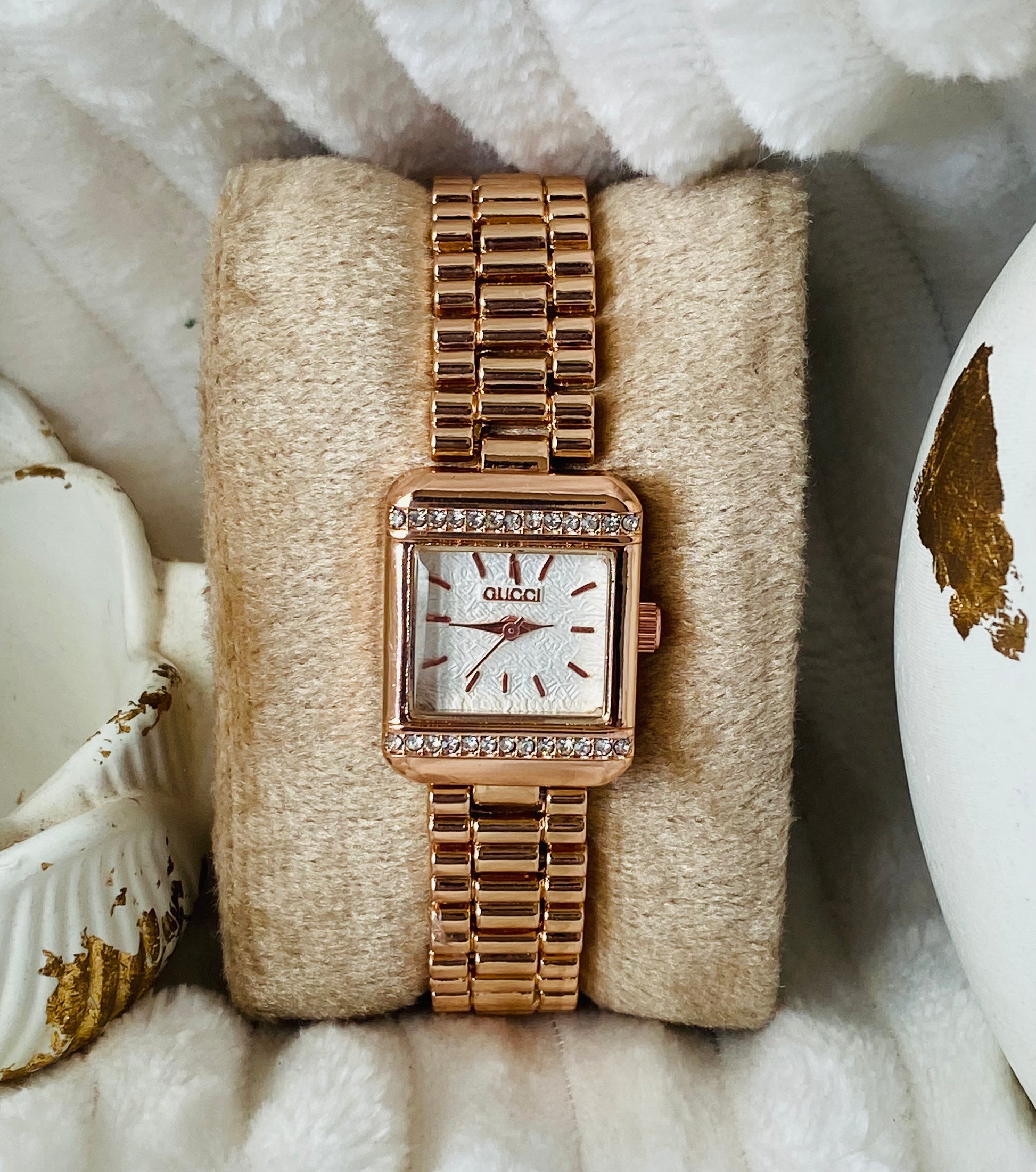 ✨ Exquisite White Dial Rose Gold Strap Crystal Studded Watch✨