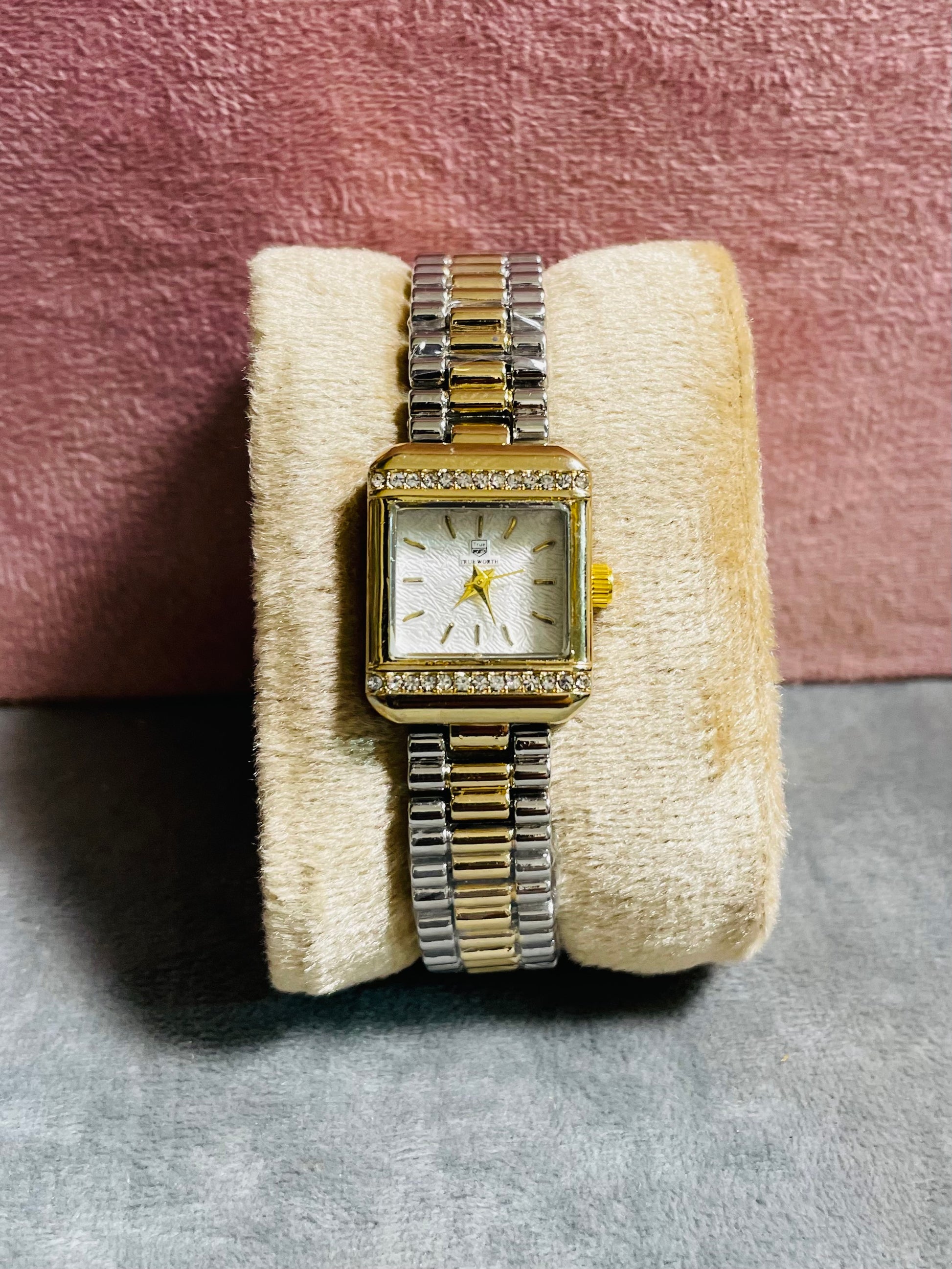 ✨Exquisite Crystal studded White Dial SilverXGold True Worth Watch ✨