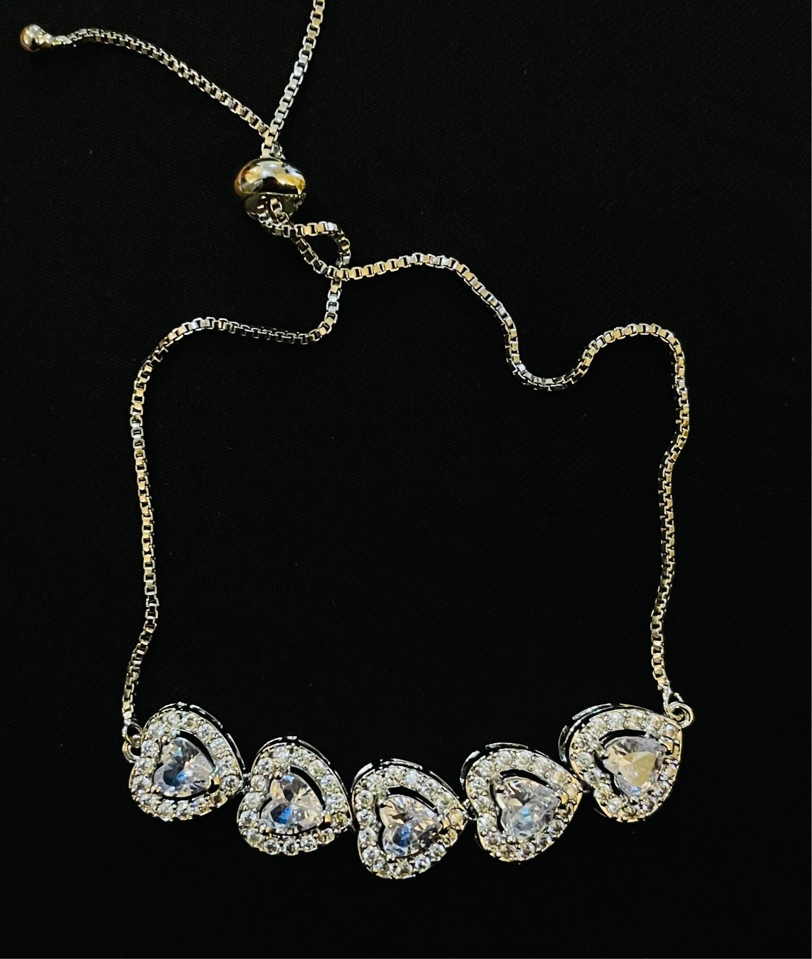 ✨Sterling silver Zirconia Heart Adjustable knot chain bracelet ✨